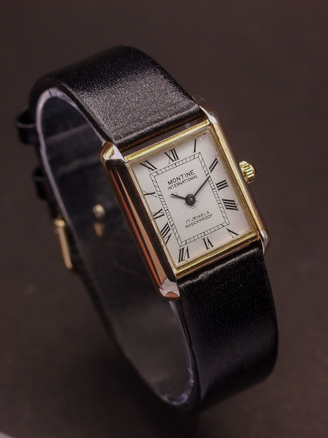 Experience mid-century Swiss elegance with this classic Montine of Switzerland Ladies timepiece. Known for their "one sold every minute" success in the 1970s and 80s inflight market, Montine watches were a staple of affordable luxury and reliable Swiss craftsmanship.